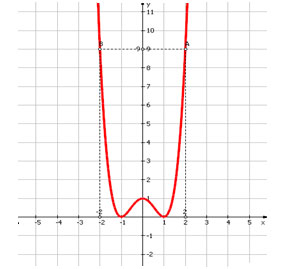Hàm số có hai CT tại x = ±1; yCT = y(±1) = 0 và có một CĐ tại x = 0 ; yCĐ = y(0) = 1.