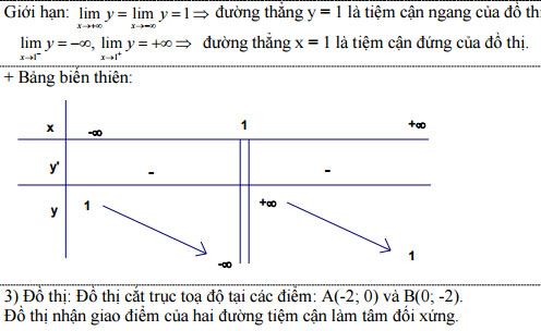 Câu 1: Cho hàm số y = (x + 2)/(x - 1) (1)