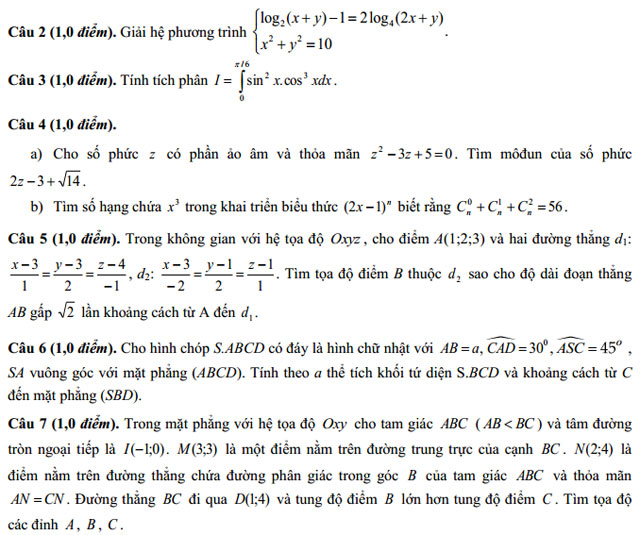 Đề thi thử Quốc gia môn Toán có đáp án