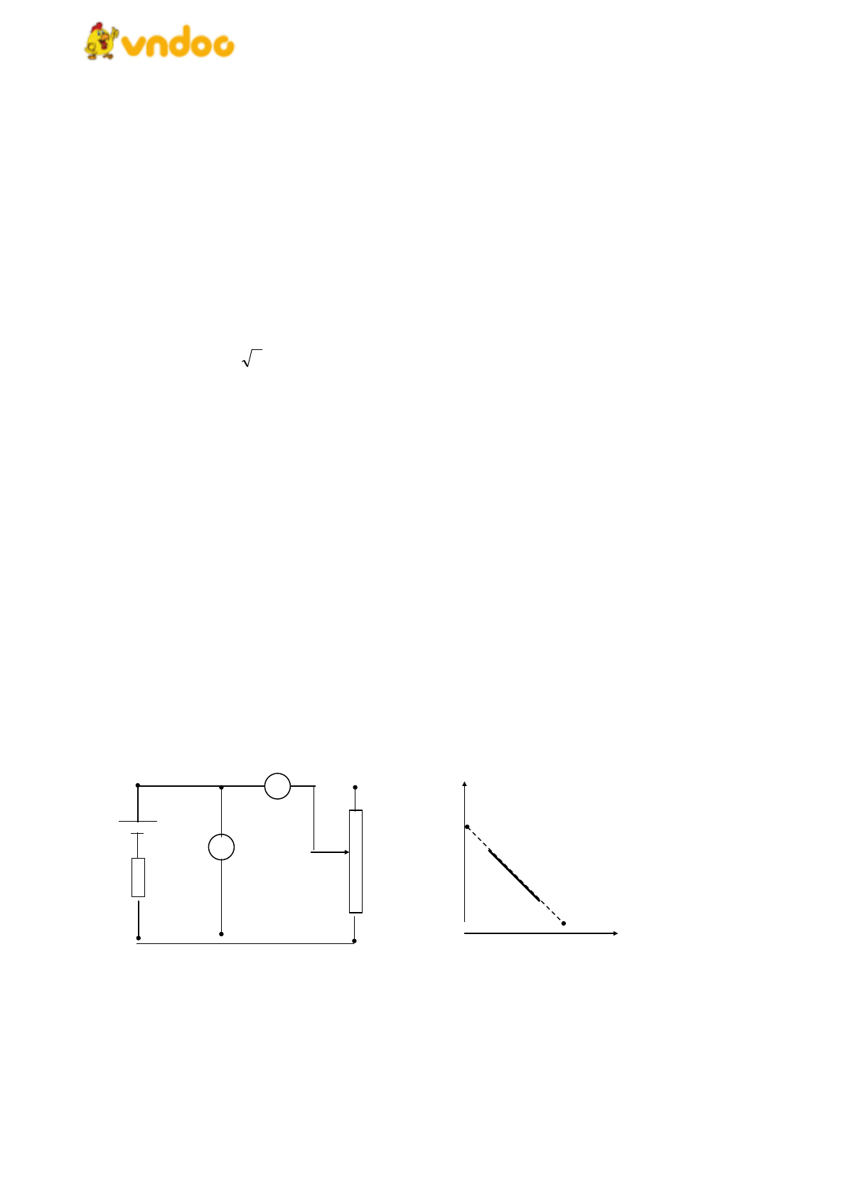 đồ thị như hình vẽ 2. Cho rằng ampe kế và vôn kế lí tưởng. Suất điện động và điện trở trong của nguồn