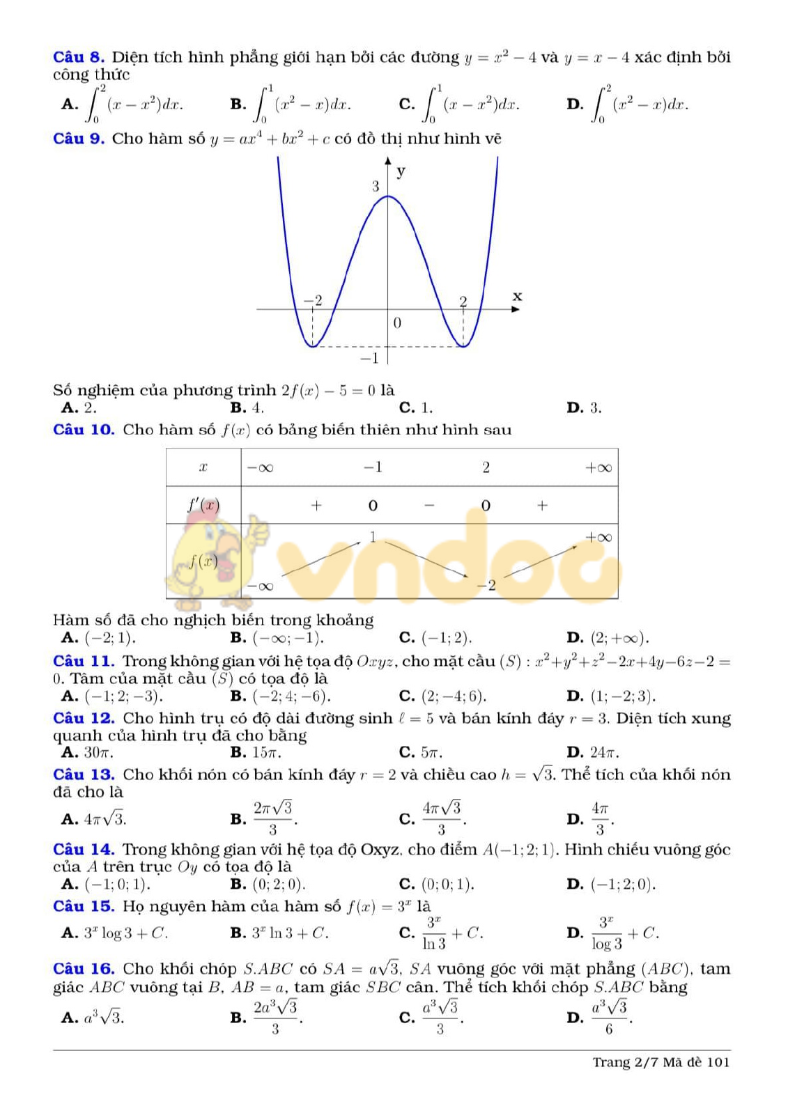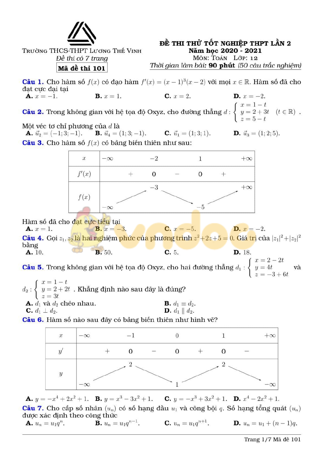 Đề thi thử THPT Quốc gia 2021 môn Toán trường Lương Thế Vinh, Hà Nội lần 2 được VnDoc.com sưu tầm và gửi tới bạn đọc cùng tham khảo. Đề thi với cấu trúc 50 câu hỏi trắc nghiệm Toán 12, là tài liệu tham khảo hữu ích cho các em ôn thi THPT Quốc gia.