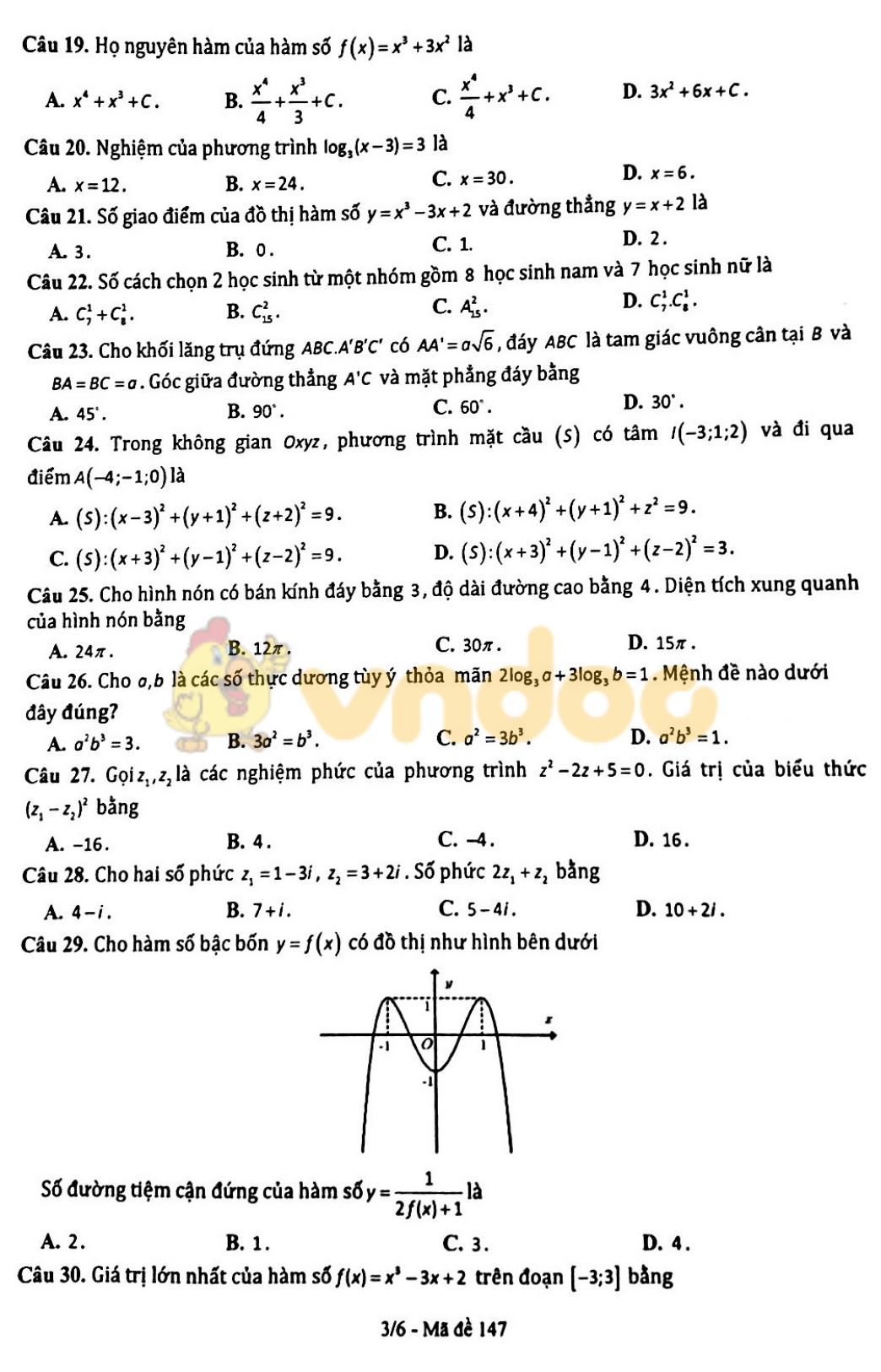 Đề thi thử tốt nghiệp THPT quốc gia 2021 môn Toán