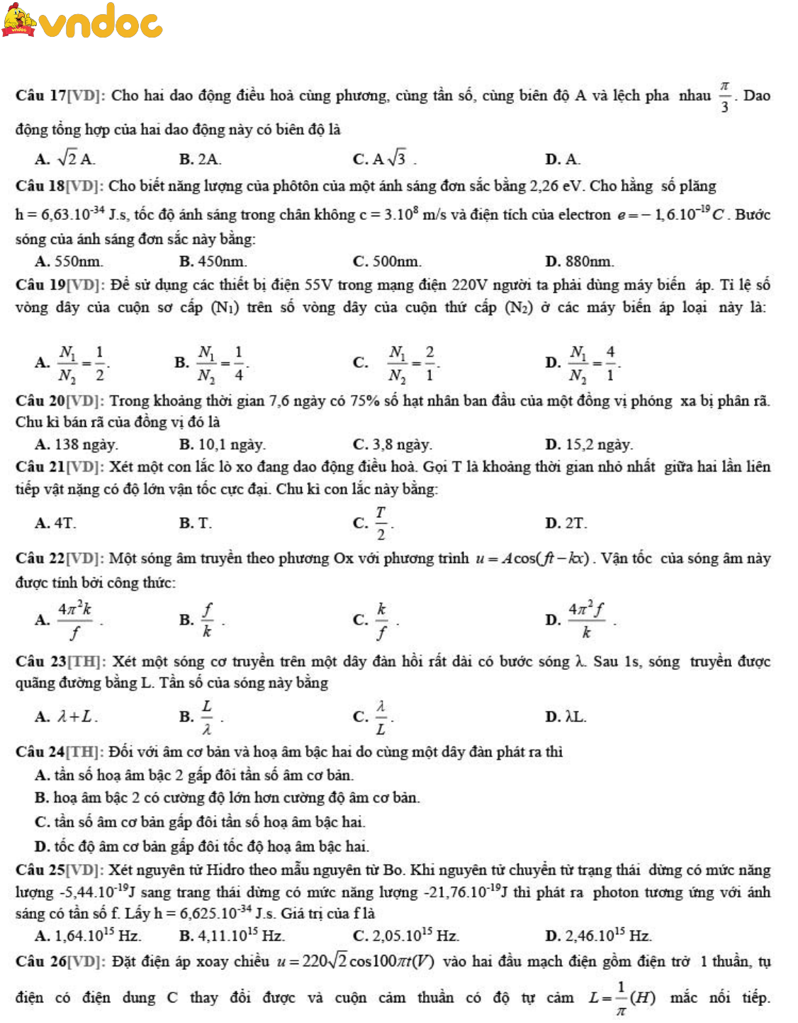 Trên đây VnDoc.com vừa giới thiệu tới các bạn Đề thi thử THPT quốc gia 2021 môn Vật lý trường Quang Trung lần 1. Mời các bạn cùng tham khảo thêm các môn Toán 12, Ngữ văn 12, Tiếng Anh 12, đề thi học kì 1 lớp 12, đề thi học kì 2 lớp 12... được cập nhật liên tục trên VnDoc.com.