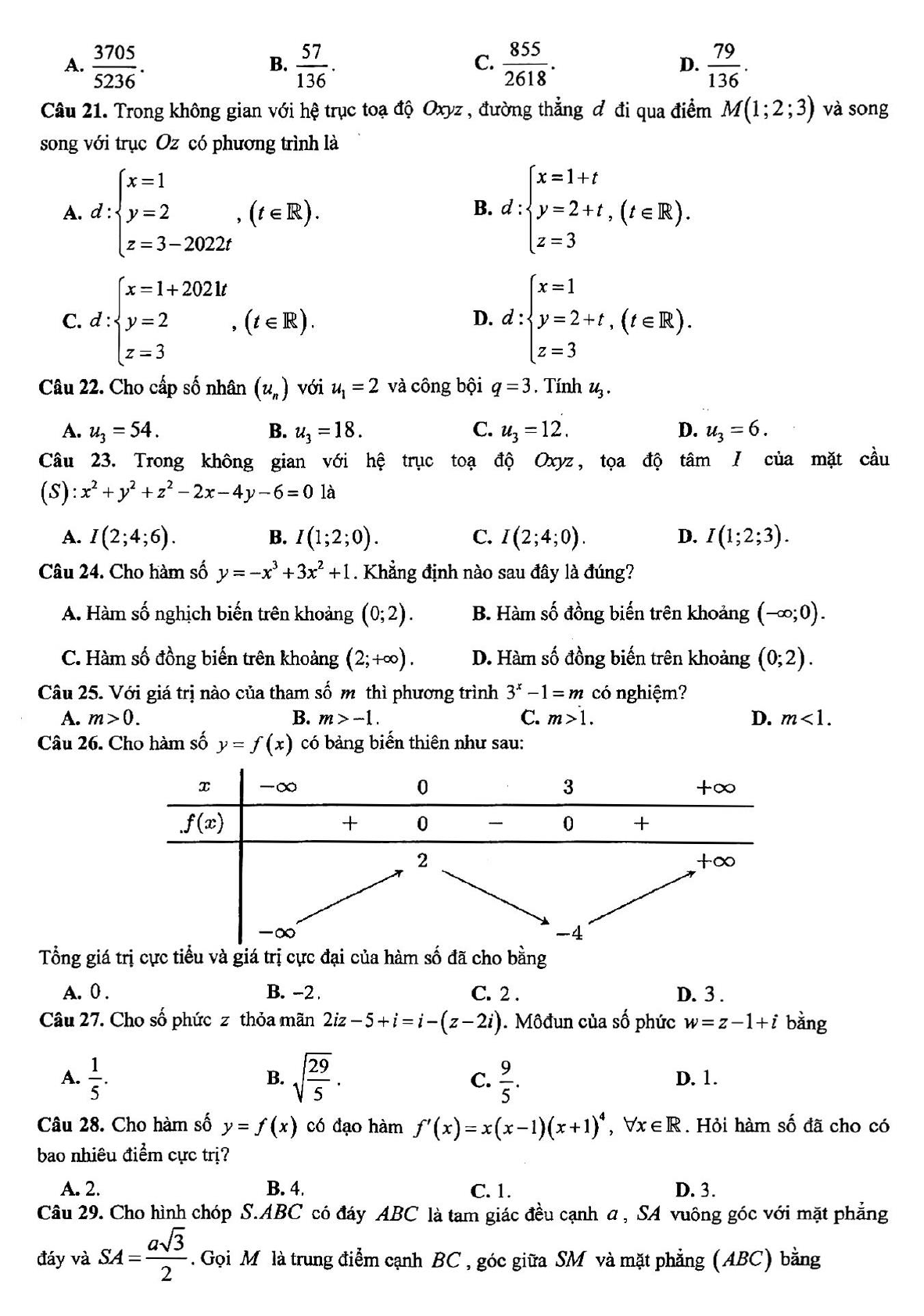 Đề thi thử THPT Quốc gia 2022 môn Toán lần 2 Sở GDKHCN Bạc Liêu