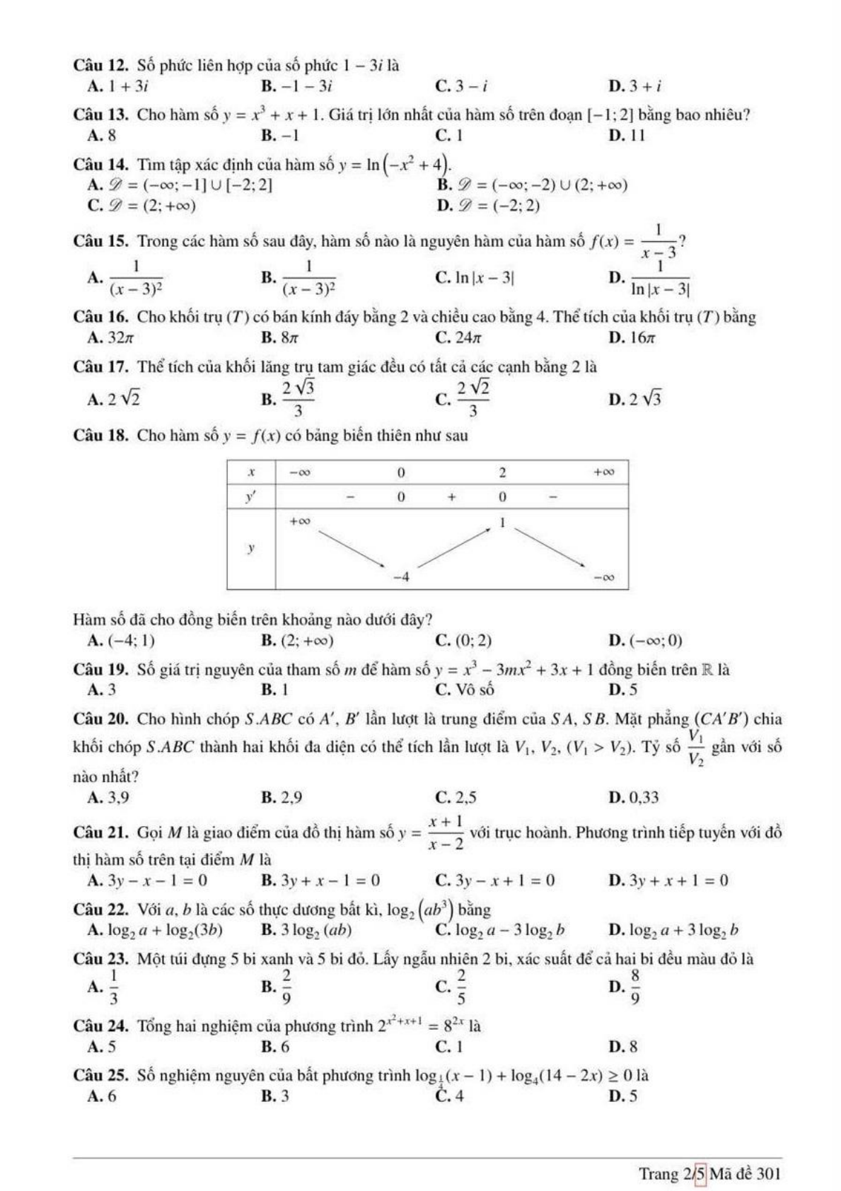 - Đề thi thử THPT Quốc gia 2022 môn Toán lần 1 trường THPT Yên Phong 1, Bắc Ninh