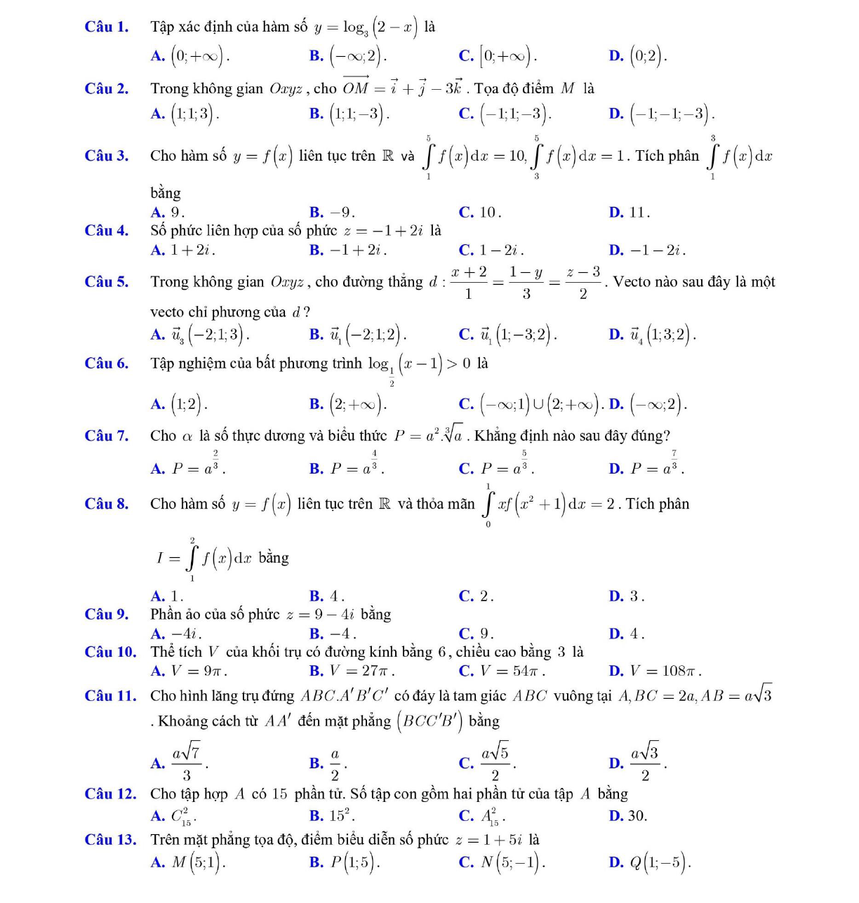 Đề thi thử THPT Quốc gia 2024 môn Toán Sở GD&ĐT Bắc Ninh được VnDoc.com sưu tầm và xin gửi tới bạn đọc cùng tham khảo. Bài viết gồm có 50 câu hỏi trắc nghiệm, thí sinh làm bài trong thời gian 90 phút. Mời các bạn cùng theo dõi và tham khảo thêm đề thi các môn tại mục Thi THPT Quốc gia nhé.