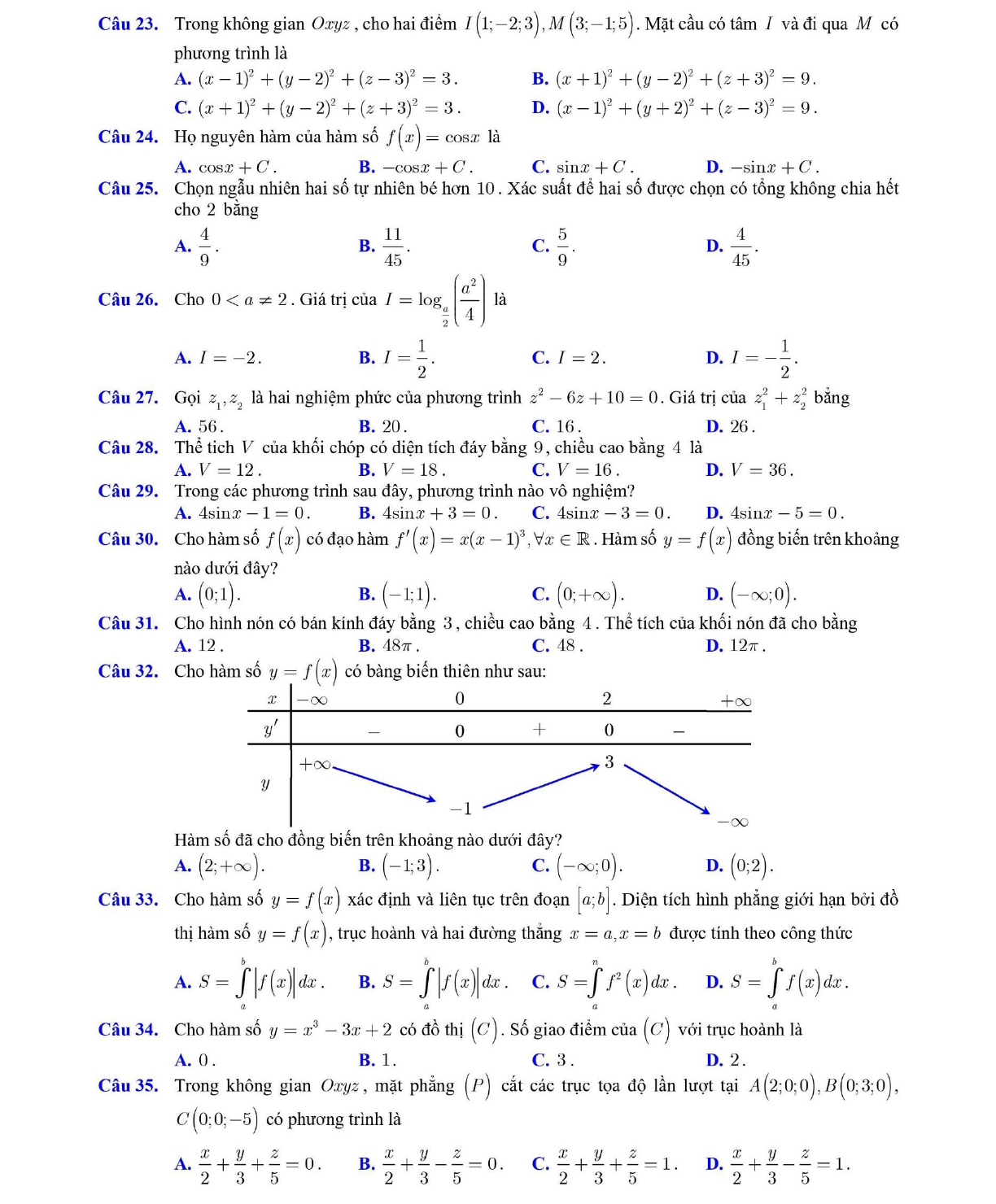 Đề thi thử tốt nghiệp THPT Quốc gia 2024 môn Toán Sở GD&ĐT Bắc Ninh