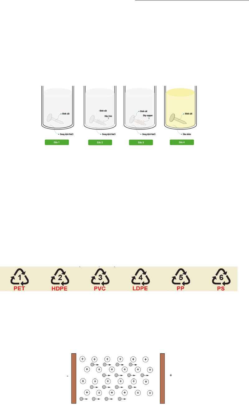 dây Zn, cho vào cốc 3 đinh sắt sạch được quấn bởi dây Cu. Để 4 cốc trong không khí khoảng 5 ngày.