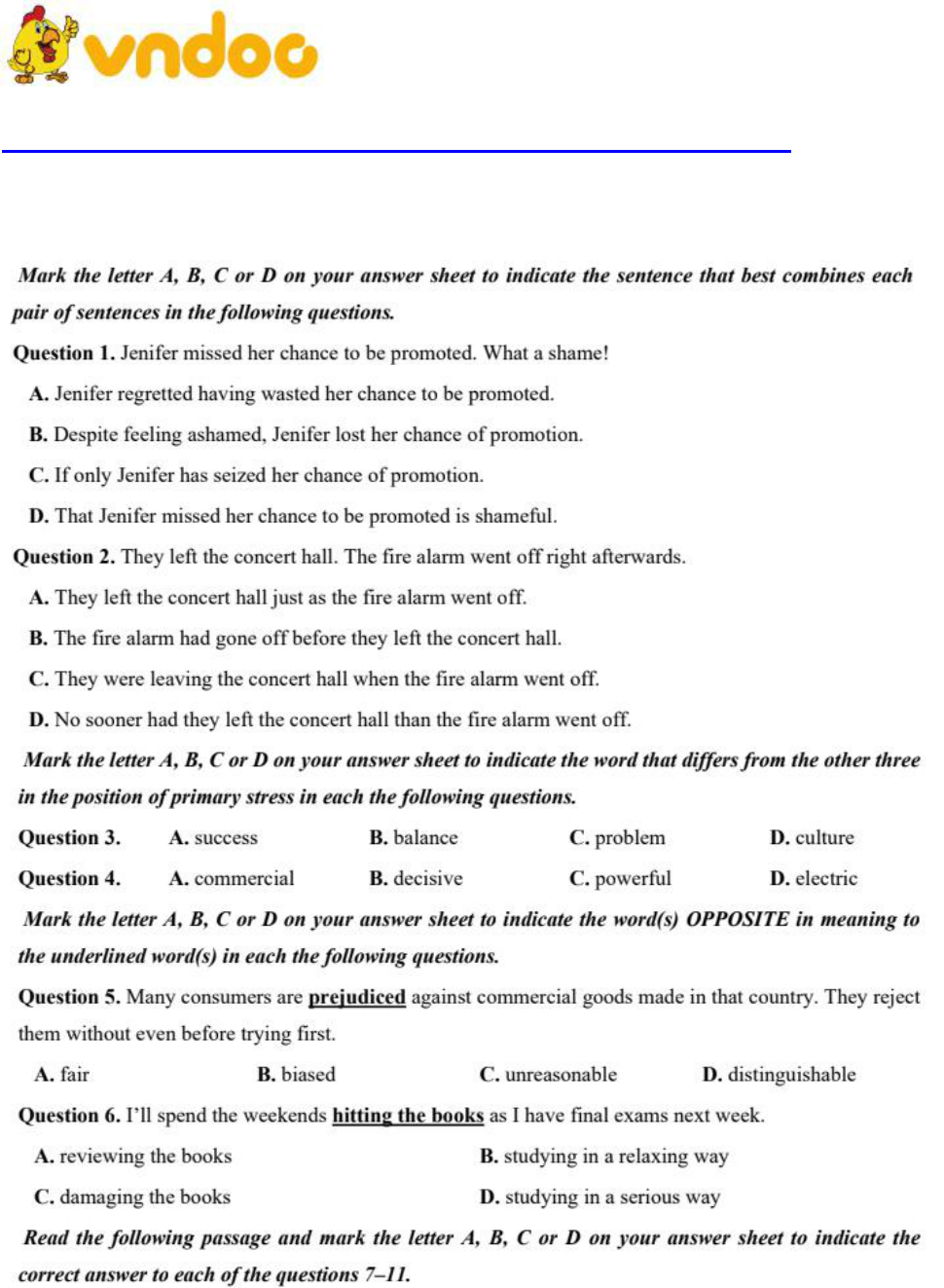 Tải trọn bộ nội dung đề thi và đáp án tại: Đề thi thử THPT Quốc Gia lần 1 năm 2019 môn Tiếng Anh sở GD - ĐT Hải Phòng. Mời bạn đọc tham khảo thêm nhiều tài liệu ôn thi THPT Quốc Gia năm 2019 các môn khác như: Thi thpt Quốc gia môn Tiếng Anh 2019, Thi thpt Quốc gia môn Toán 2019, Thi thpt Quốc gia môn Văn 2019 ,.... có trên VnDoc.com.
