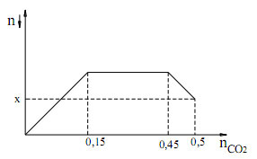19. Sục CO2 vào dung dịch hỗn hợp gồm Ca(OH)2 và KOH ta quan sát hiện tượng theo đồ thị hình bên (số liệu tính theo đơn vị mol).