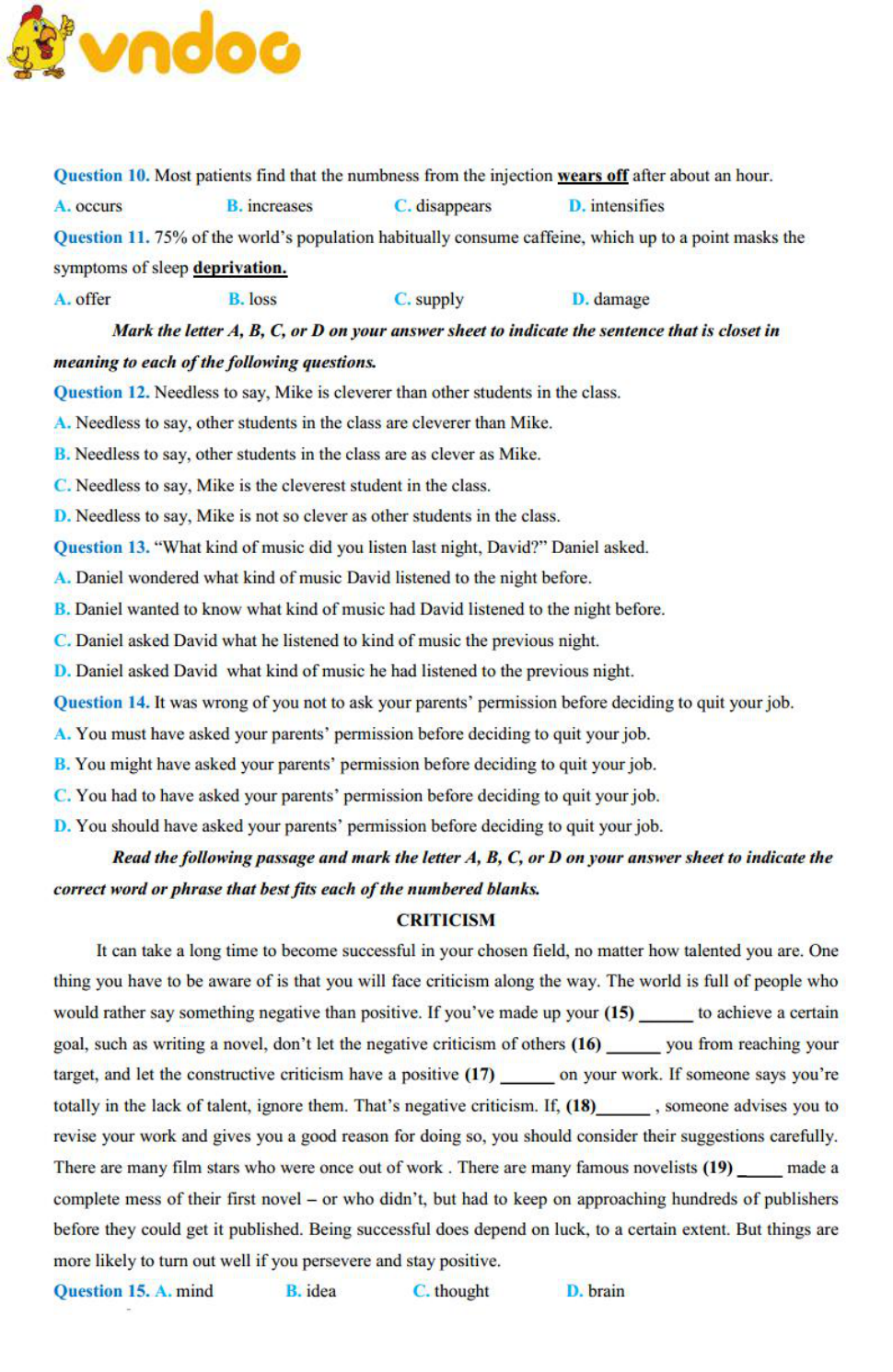 Xem thêm: Đáp án Đề thi môn Tiếng Anh THPT Quốc gia năm 2018 - 2019 HOT
