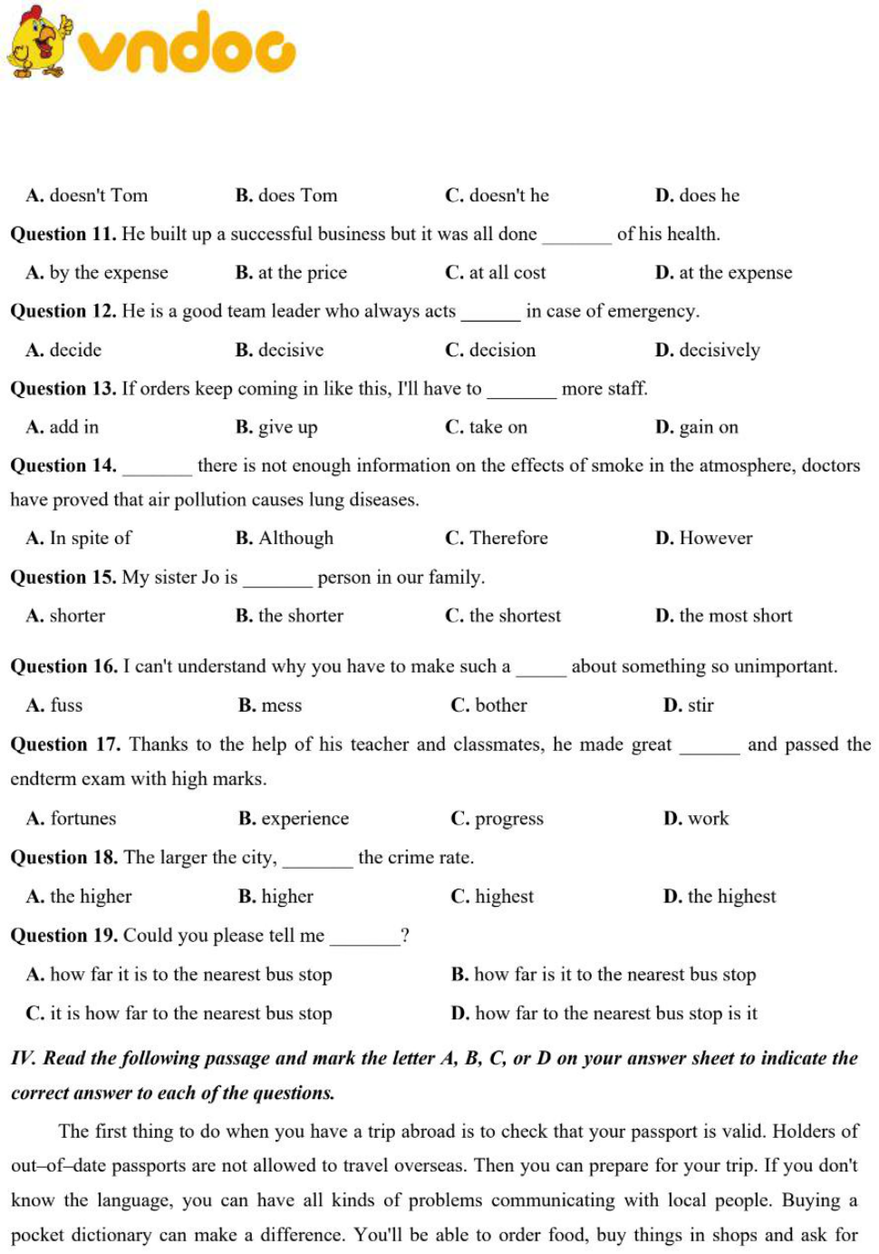 Tải trọn bộ đề thi và đáp án tại: Đề thi thử THPT Quốc Gia lần 2 năm 2019 môn Tiếng Anh trường THPT Hồng Quang. Mời bạn đọc tham khảo thêm nhiều tài liệu ôn thi THPT Quốc Gia năm 2019 các môn khác như: Thi thpt Quốc gia môn Tiếng Anh 2019, Thi thpt Quốc gia môn Toán 2019, Thi thpt Quốc gia môn Văn 2019 ,.... có trên VnDoc.com.