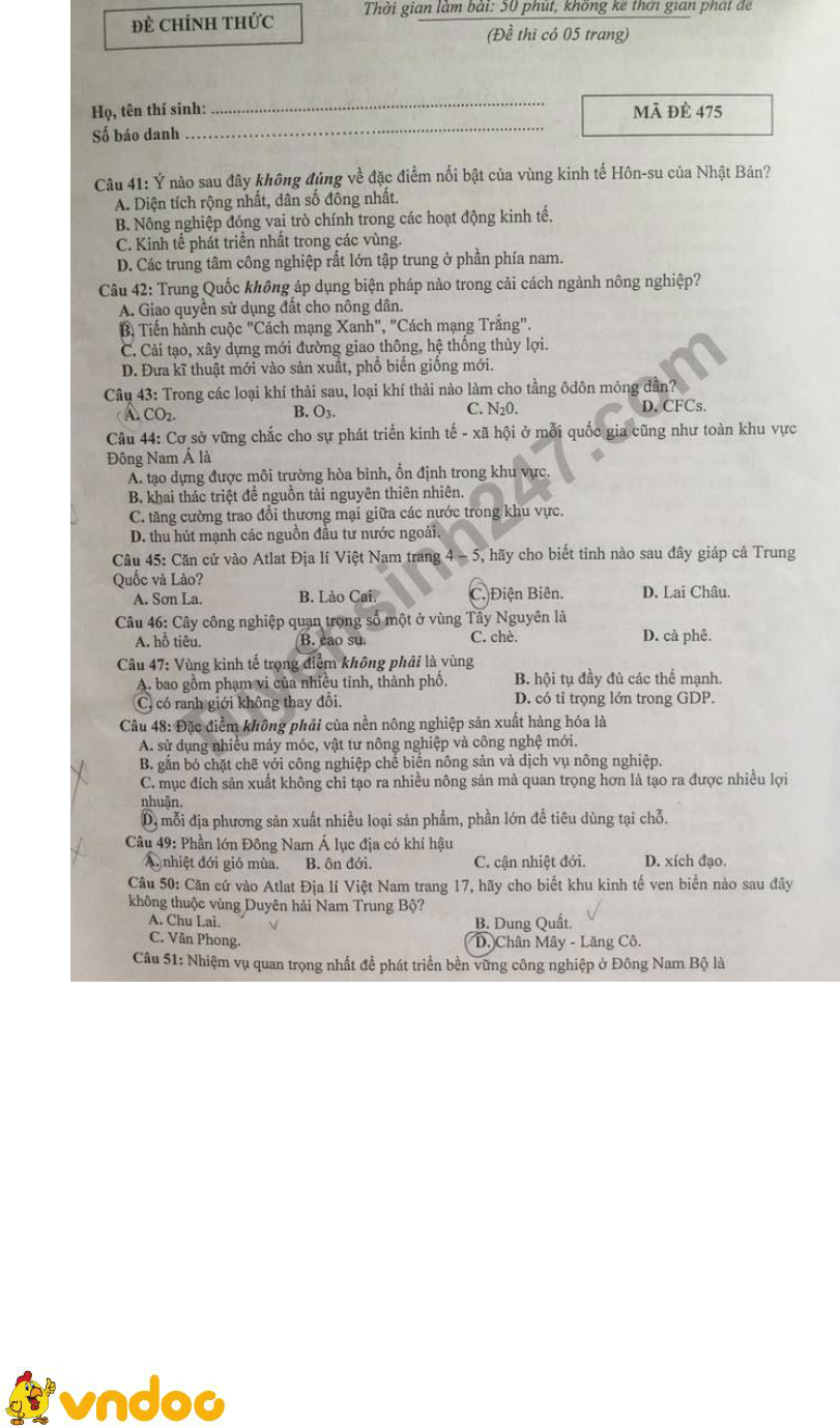 Trên đây VnDoc.com đã giới thiệu tới bạn đọc tài liệu: Đề thi thử THPT quốc gia môn Địa lí năm học 2017 - 2018 trường THPT chuyên Cao Bằng. Để có kết quả cao hơn trong học tập, VnDoc xin giới thiệu tới các bạn học sinh tài liệu Thi thpt Quốc gia môn Văn, Thi thpt Quốc gia môn Lịch sử, Thi thpt Quốc gia môn Địa lý mà VnDoc tổng hợp và đăng tải.