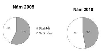 - Vẽ biểu đồ thích hợp nhất thể hiện cơ cấu sản lượng thủy sản phân theo hoạt động đánh bắt và nuôi trồng của nước ta năm 2000 và 2010.