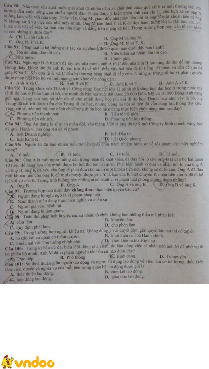 Đề thi thử THPT quốc gia môn GDCD năm 2018