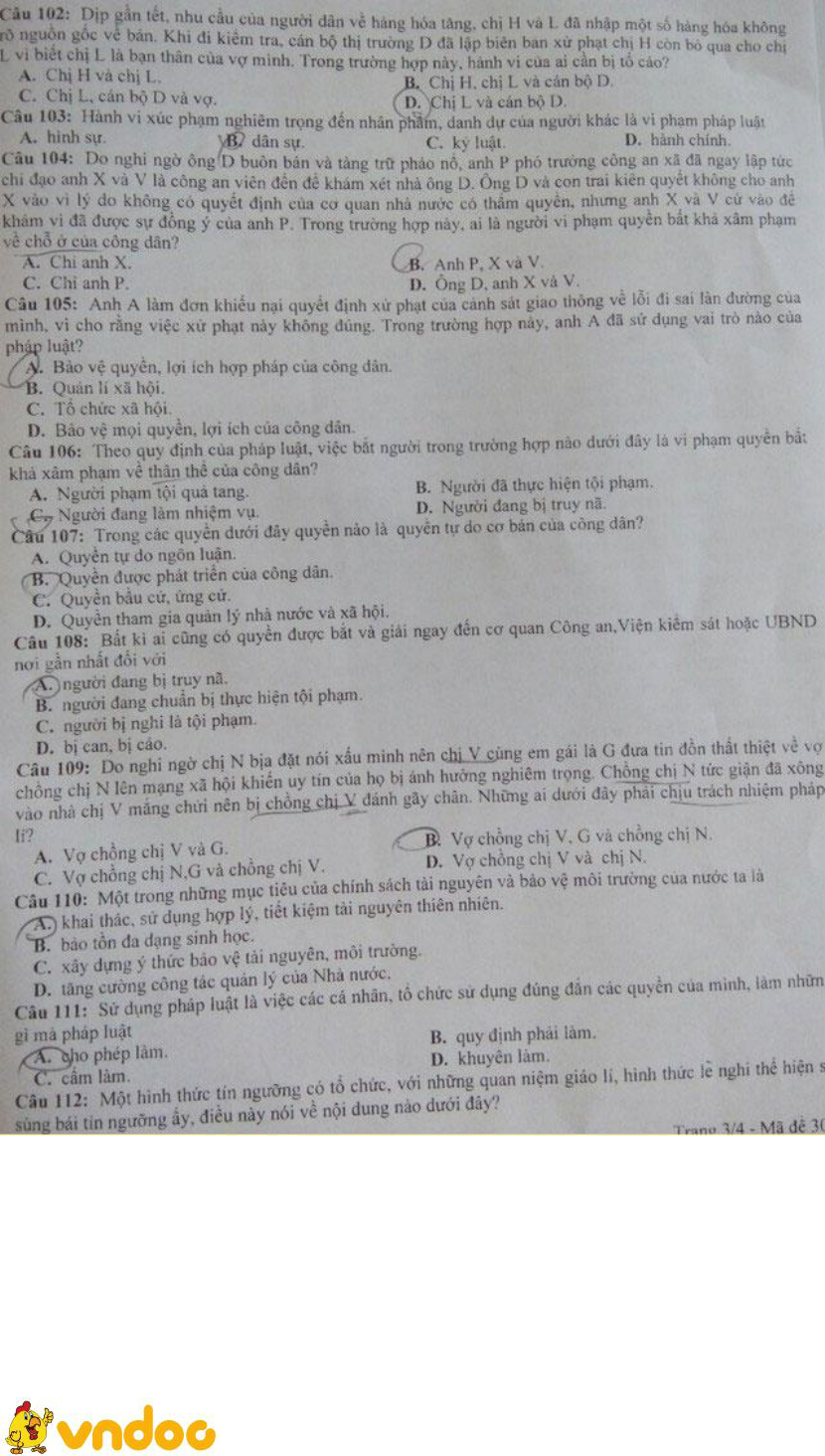 VnDoc xin giới thiệu tới bạn đọc Đề thi thử THPT quốc gia môn GDCD năm học 2017 - 2018 Sở GD&ĐT Hưng Yên, nội dung tài liệu sẽ giúp các bạn học sinh rèn luyện làm bài tập trắc nghiệm GDCD một cách nhanh nhất. Mời thầy cô cùng các bạn học sinh tham khảo.