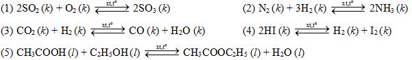 Khi thay đổi áp suất, nhóm gồm các cân bằng hoá học đều không bị chuyển dịch là