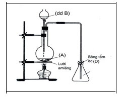 Câu 17. Hình vẽ bên là sơ đồ điều chế và thu khí E (không màu, độc). Công thức của E và D lần lượt là: