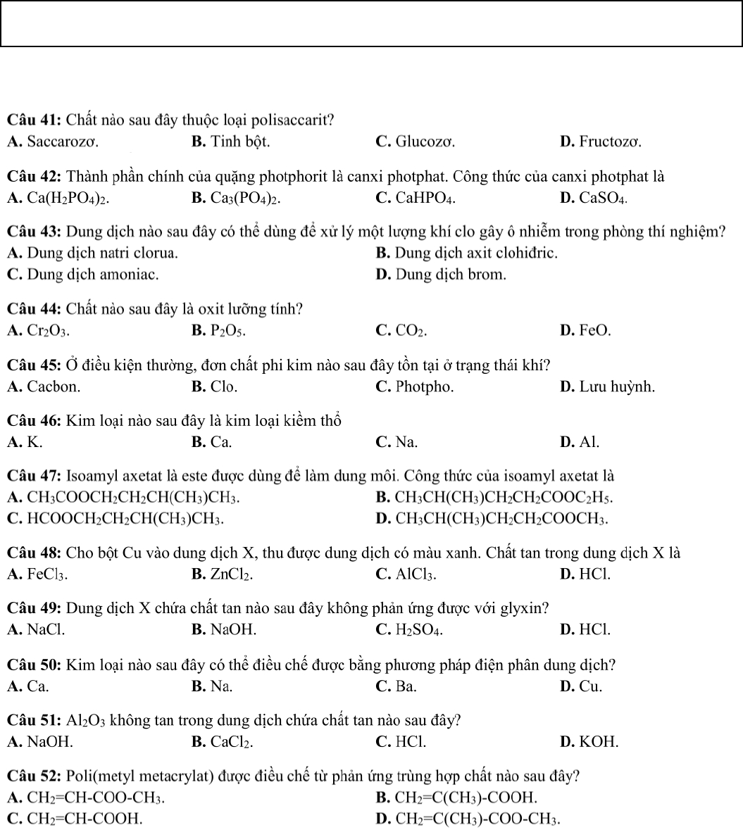 - Đáp án đề thi THPT Quốc gia môn Hóa học năm 2018