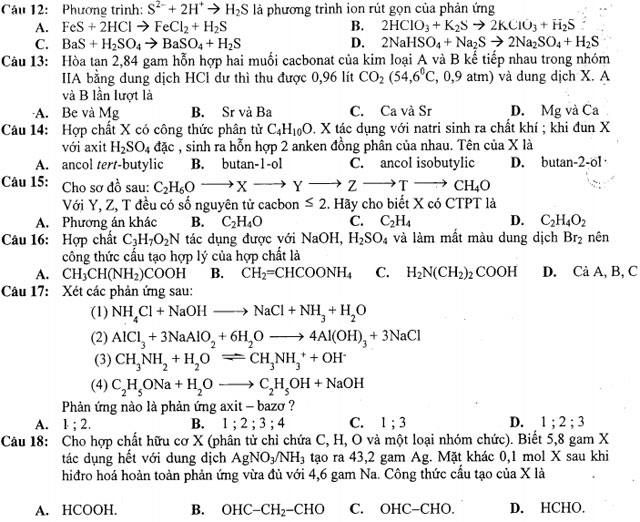 Đáp án - Đề thi chính thức THPT Quốc gia môn Hóa học năm 2015