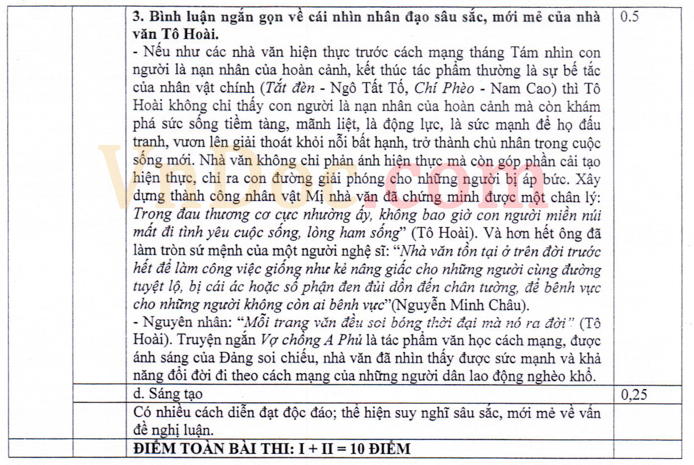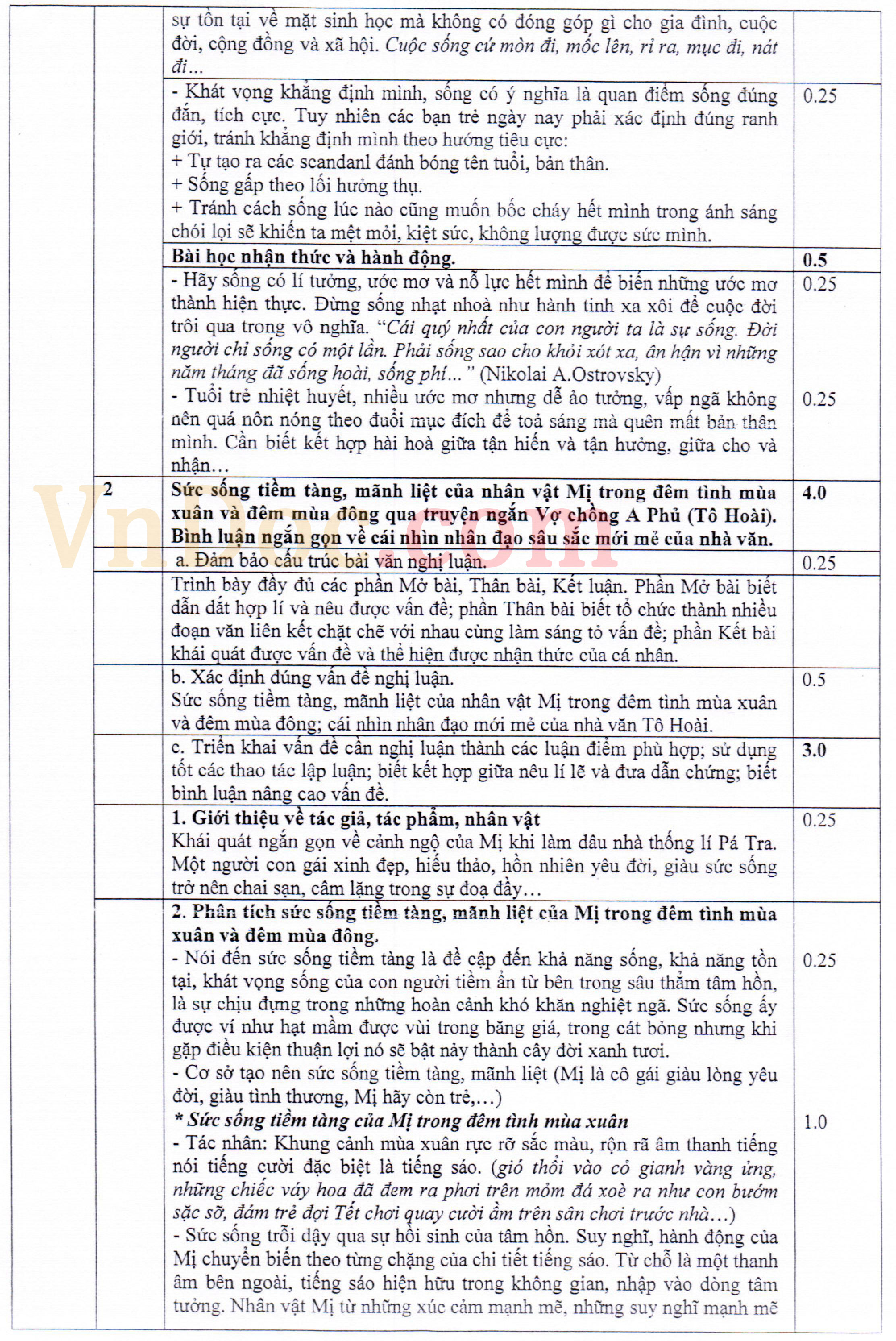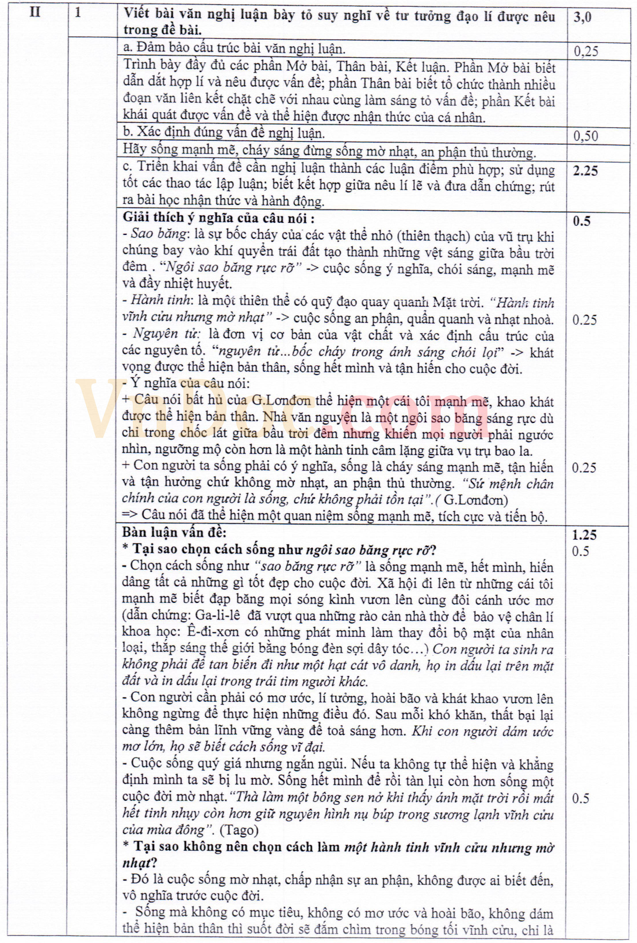 Đáp án đề thi thử THPT Quốc gia môn Ngữ văn năm 2016