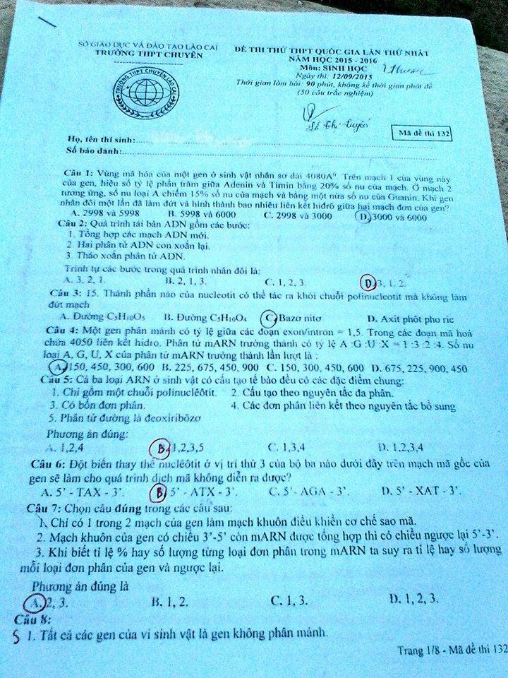 Trường THPT chuyên Lào Cai tổ chức thi thử THPT Quốc gia lần 1 năm 2016 cho các em học sinh lớp 12. VnDoc.com xin giới thiệu tới các bạn đề thi thử THPT Quốc gia môn Sinh học lần 1 năm 2016 trường THPT Chuyên Lào Cai, gồm 50 câu trắc nghiệm, làm trong thời gian 90 phút. Mời các bạn cùng tham khảo.
