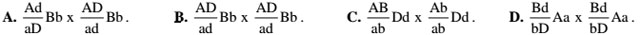 Câu 17: Ở một loài thực vật, gen A quy định thân cao, alen a quy định thân thấp; gen B quy định quả màu đỏ, gen b quy định quả màu vàng; gen D quy định quả tròn, alen d quy định quả dài. Biết rằng các gen trội là trội hoàn toàn. Cho giao phấn cây thân cao, quả đỏ, tròn với cây thân thấp, quả vàng, dài thu được F1 gồm 1602 cây thân cao, quả màu đỏ, dài: 1601 cây thân cao, quả màu vàng, dài: 1600 cây thân thấp, quả màu đỏ, tròn: 1599 cây thân thấp, quả màu vàng, tròn. Trong trường hợp không xảy ra hoán vị gen, sơ đồ lai nào dưới đây cho kết quả phù hợp với phép lai trên?