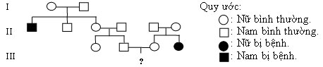 Biết rằng không xảy ra đột biến và bố của người đàn ông ở thế hệ thứ III không mang alen gây bệnh. Xác suất người con đầu lòng của cặp vợ chồng ở thế hệ thứ III bị bệnh là