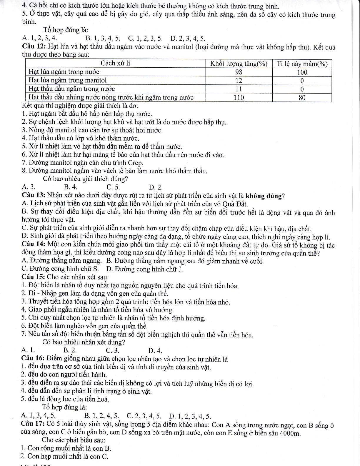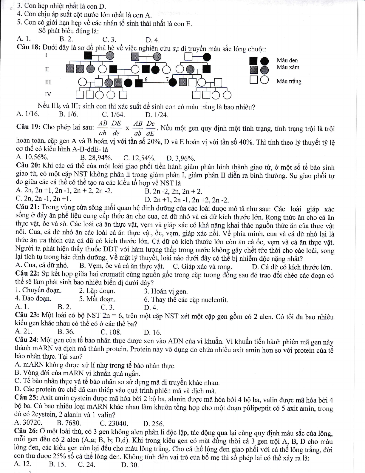 - Đề thi thử THPT Quốc gia môn Sinh học năm 2019 trường THPT Yên Lạc - Vĩnh Phúc lần 4