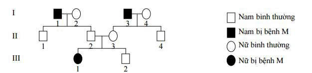 Câu 10. Khảo sát sự di truyền bệnh M ở người qua ba thế hệ như sau