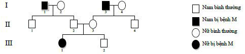 Câu 3: Khảo sát sự di truyền bệnh M ở người qua ba thế hệ như sau: