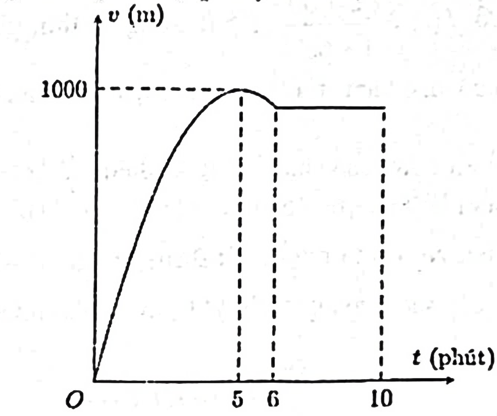 \(t\) (đơn vị: phút). Đồ thị của hàm số vận tốc như hình vẽ sau: