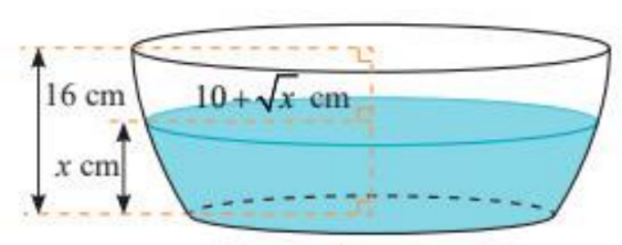 \(x\) (đơn vị cm, làm tròn kết quả đến hàng phần trăm) để dung tích nước trong chậu bằng