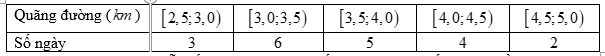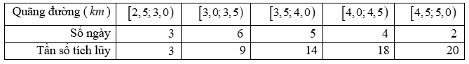 Mỗi ngày bác Hoa đều đi bộ để rèn sức khỏe. Quãng đường đi bộ mỗi ngày của bác Hoa trong 20 ngày được thống kê lại ở bảng sau: