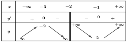 Bảng biến thiên của hàm số có đường tiệm cận đứng