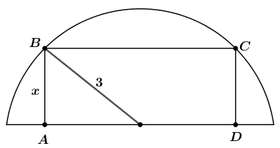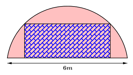 , người ra muốn cắt ra một tấm tôn hình chữ nhật có một cạnh nằm trên đường kính của hình bán nguyệt (tham khảo hình vẽ). Biết hình chữ nhật có diện tích lớn nhất. Tính diện tích lớn nhất của hình chữ nhật đó.