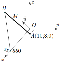 \(A(10;3;0)\) và chuyển động đều theo đường cáp có vectơ chỉ phương