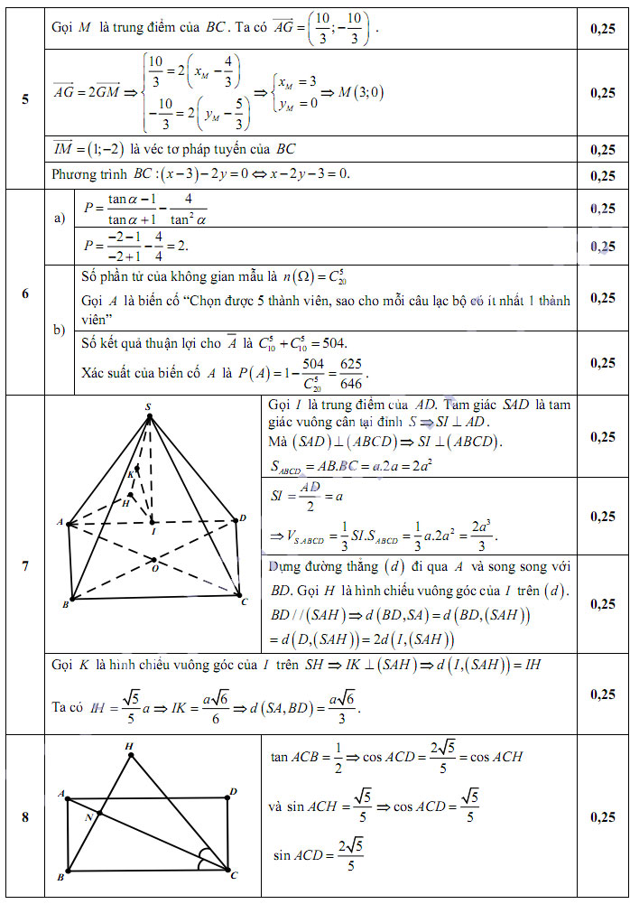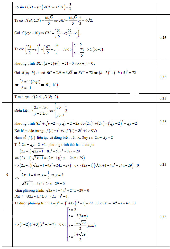 Đáp án đề thi thử THPT Quốc gia môn Toán năm 2016