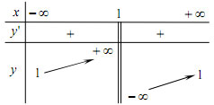 1. Tập xác định: R \ {1}.