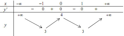 - Ta có y' = 4x(x2 - 1); y' = 0 ↔ x = 0 hoăc x = ±1.