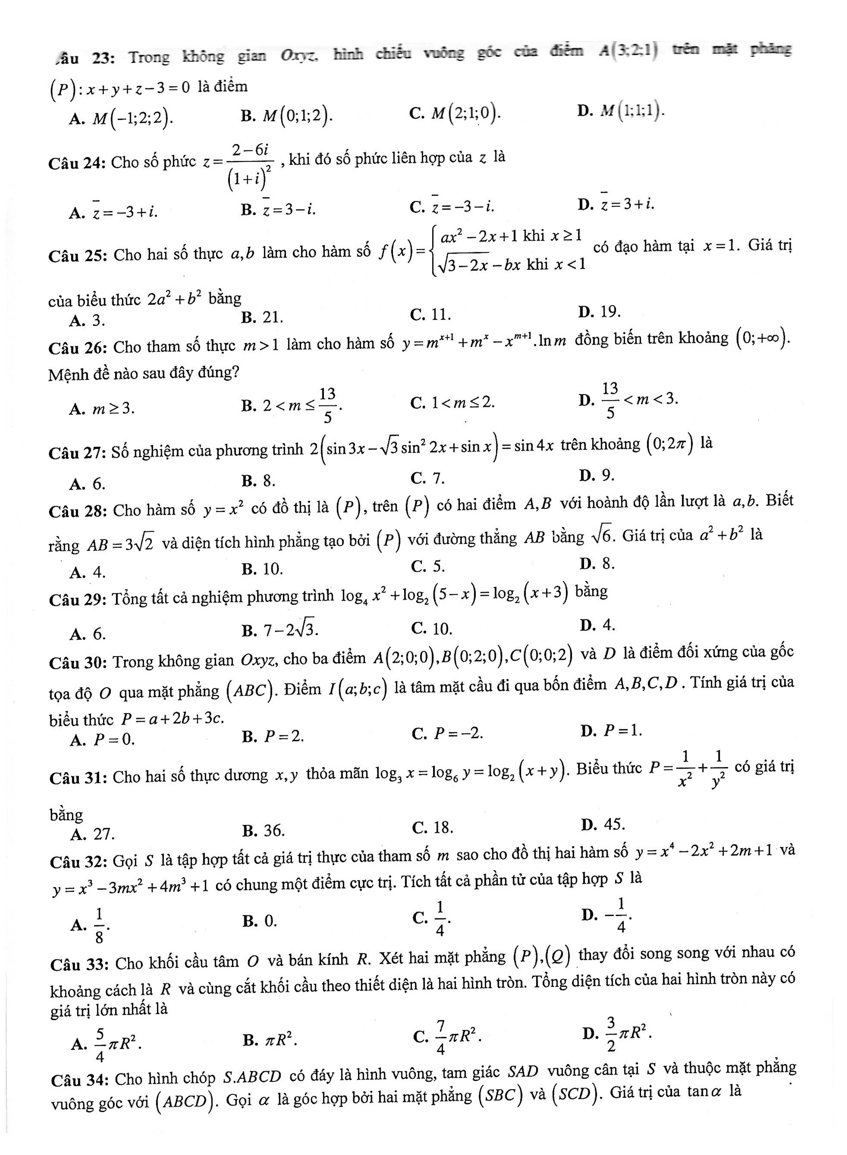 Đề thi thử THPT quốc gia môn Toán năm 2018