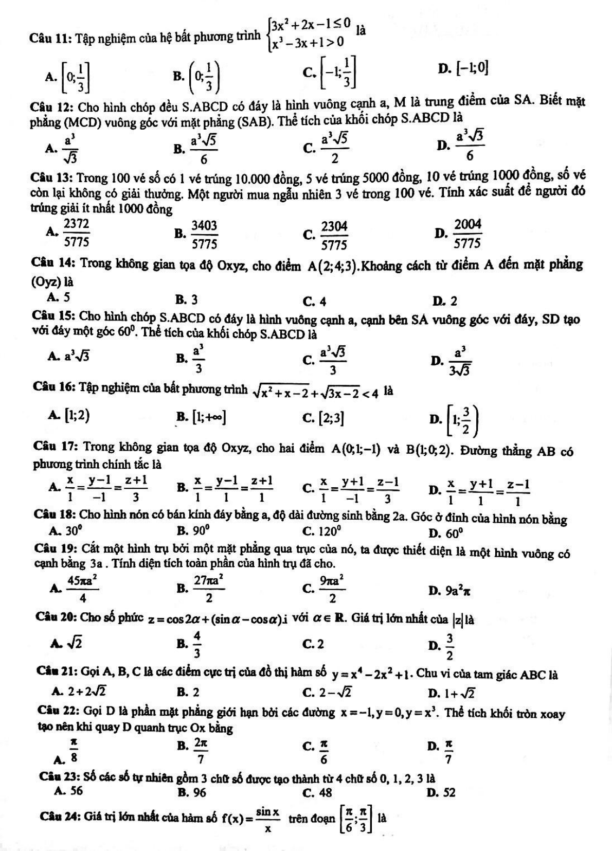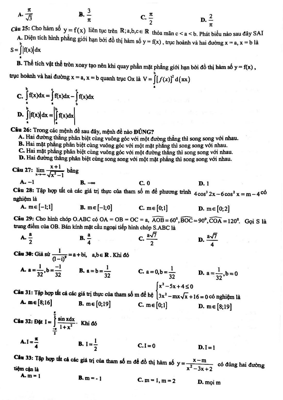 Đề thi thử THPT quốc gia môn Toán năm 2018