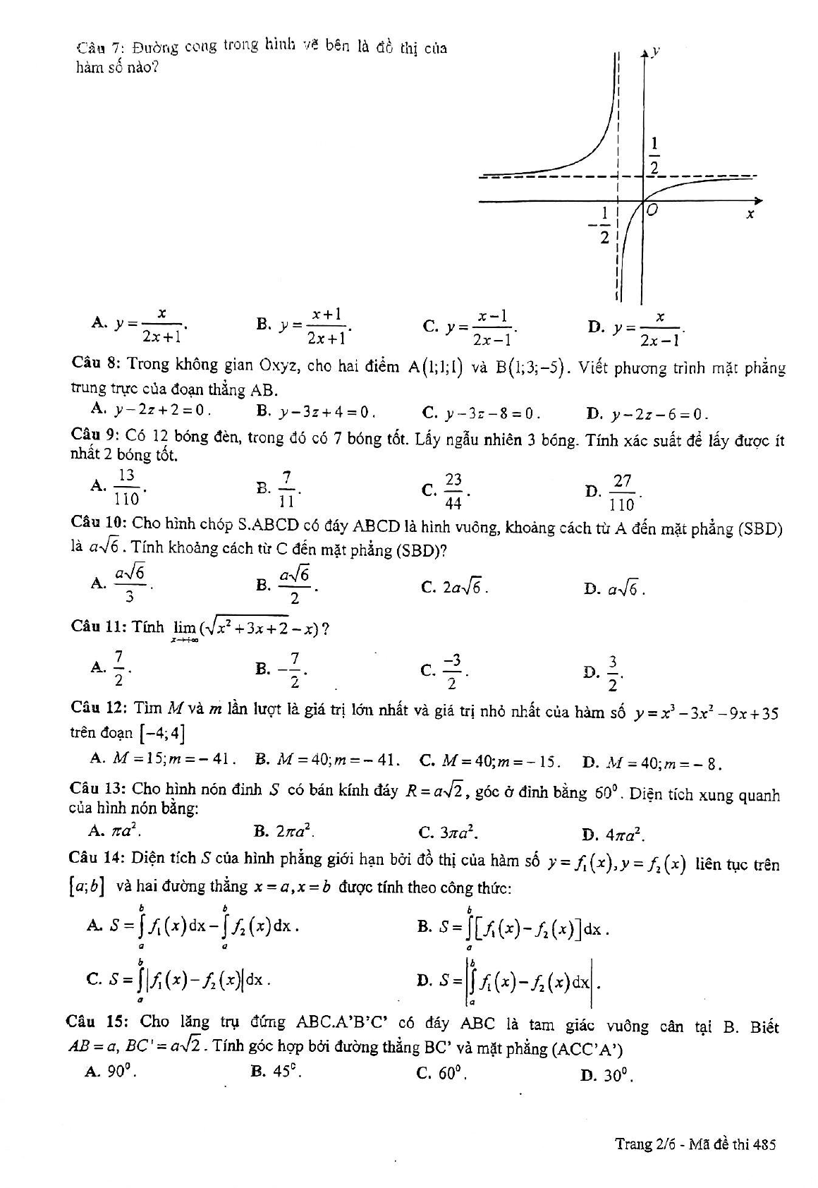 Đề thi thử THPT quốc gia môn Toán năm 2018