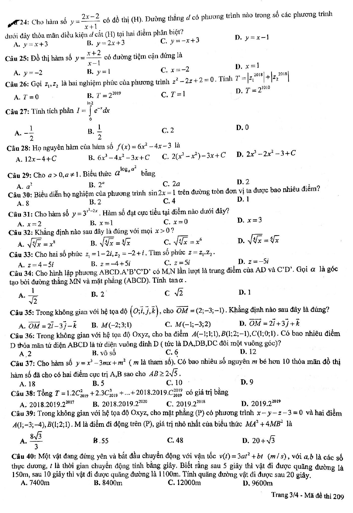Đề thi thử THPT quốc gia môn Toán năm 2018