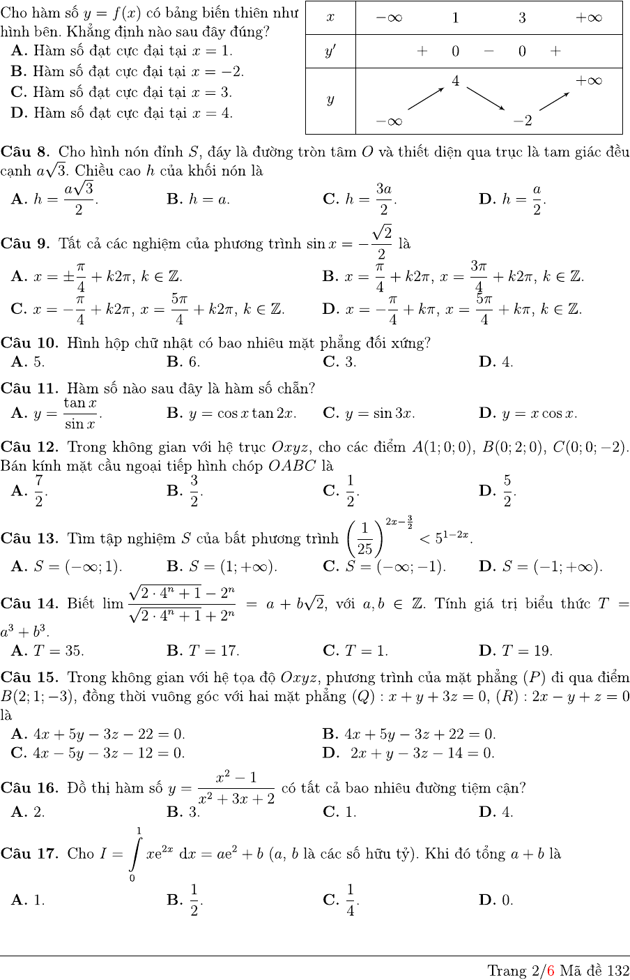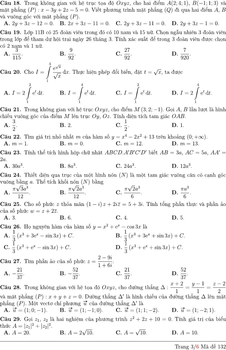 Đề thi thử THPT quốc gia môn Toán năm 2018