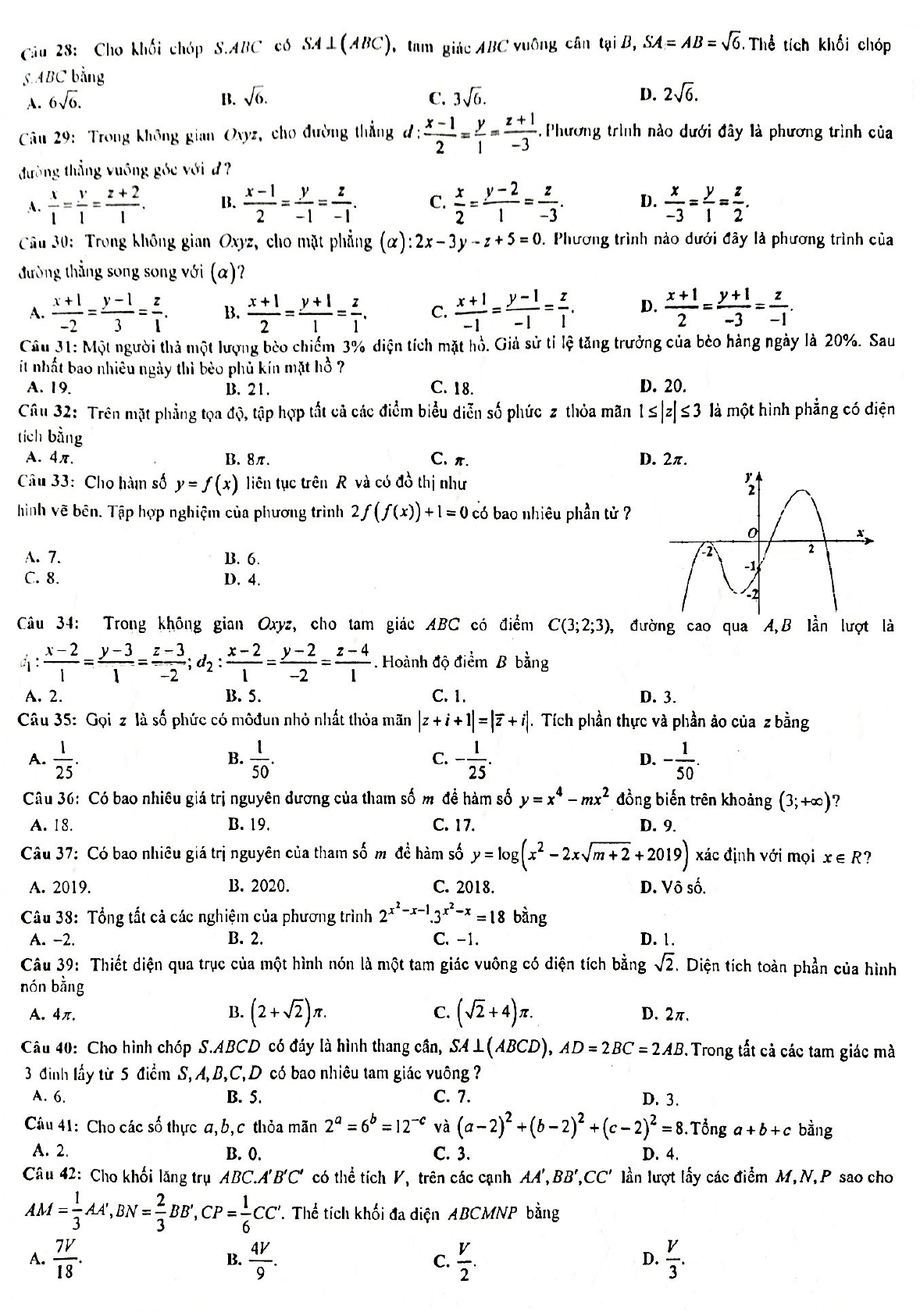 - Đề thi thử THPT Quốc gia môn Toán năm 2019 trường THPT Kim Liên - Hà Nội lần 2