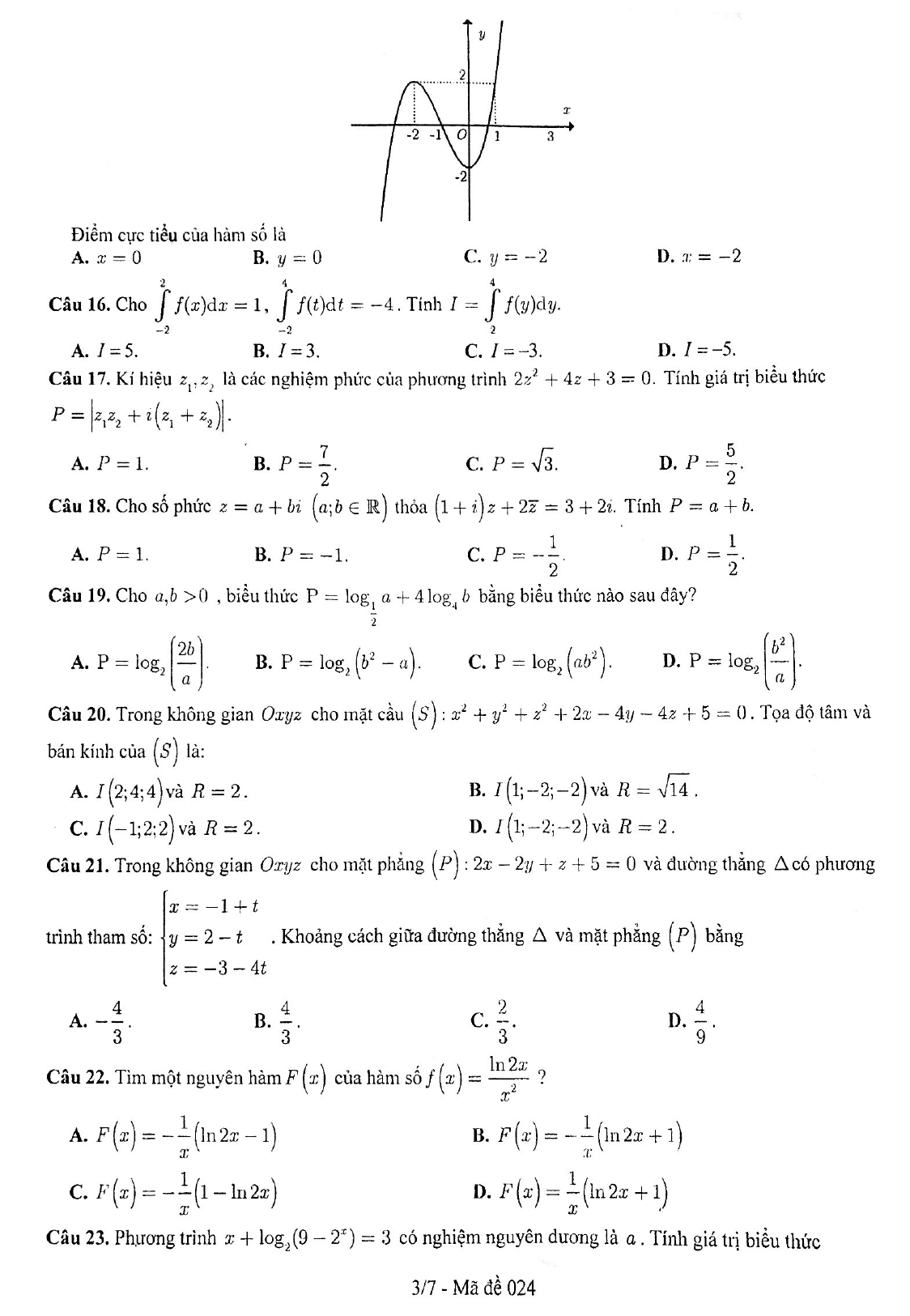 Đề thi thử môn Toán 2019