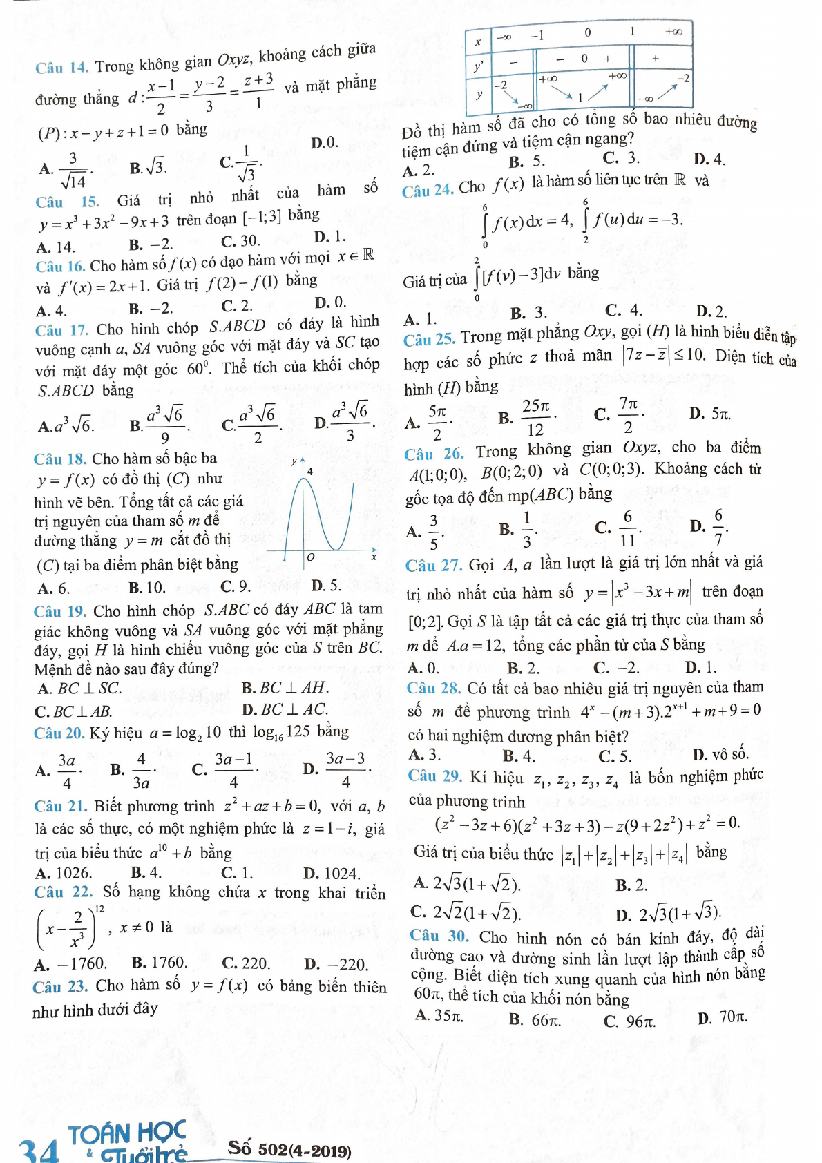 Đề thi thử 2019 môn Toán