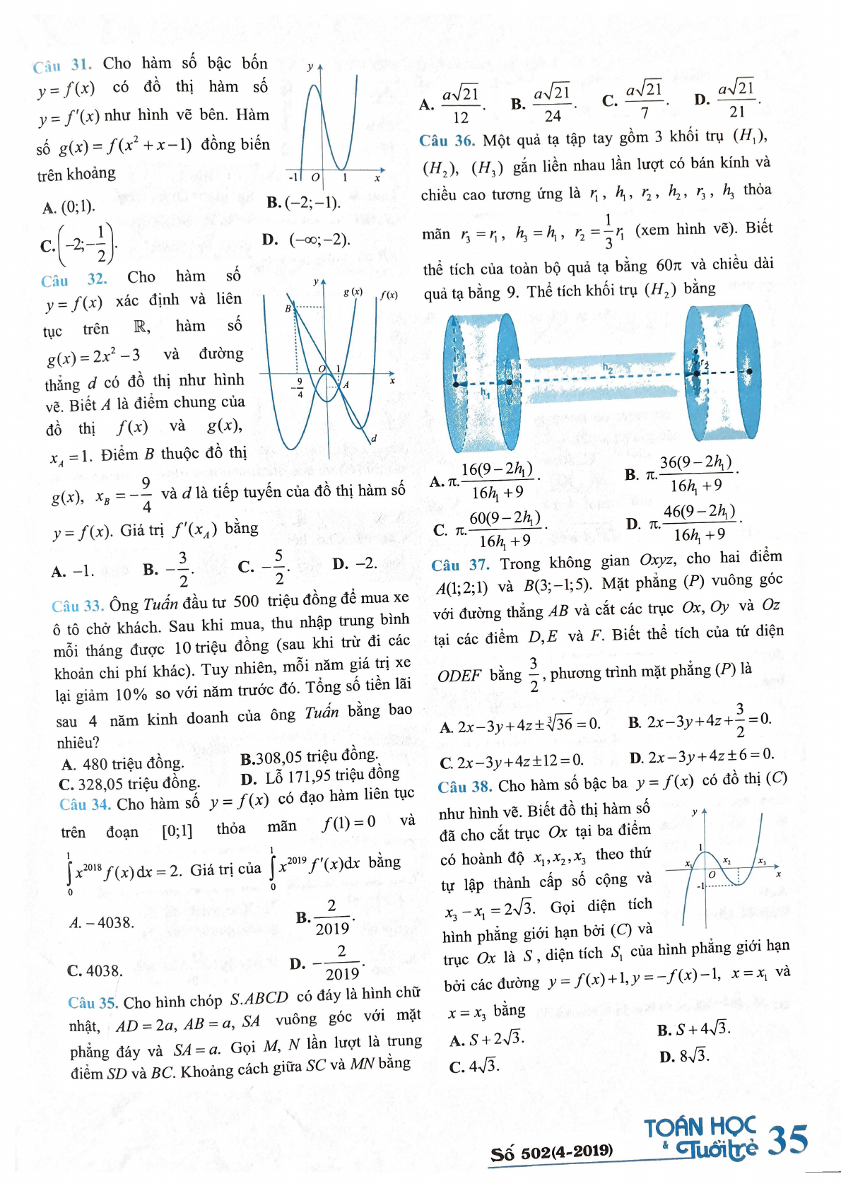 Đề thi thử THPT Quốc gia môn Toán năm 2019 - Toán Học Tuổi Trẻ đề số 5