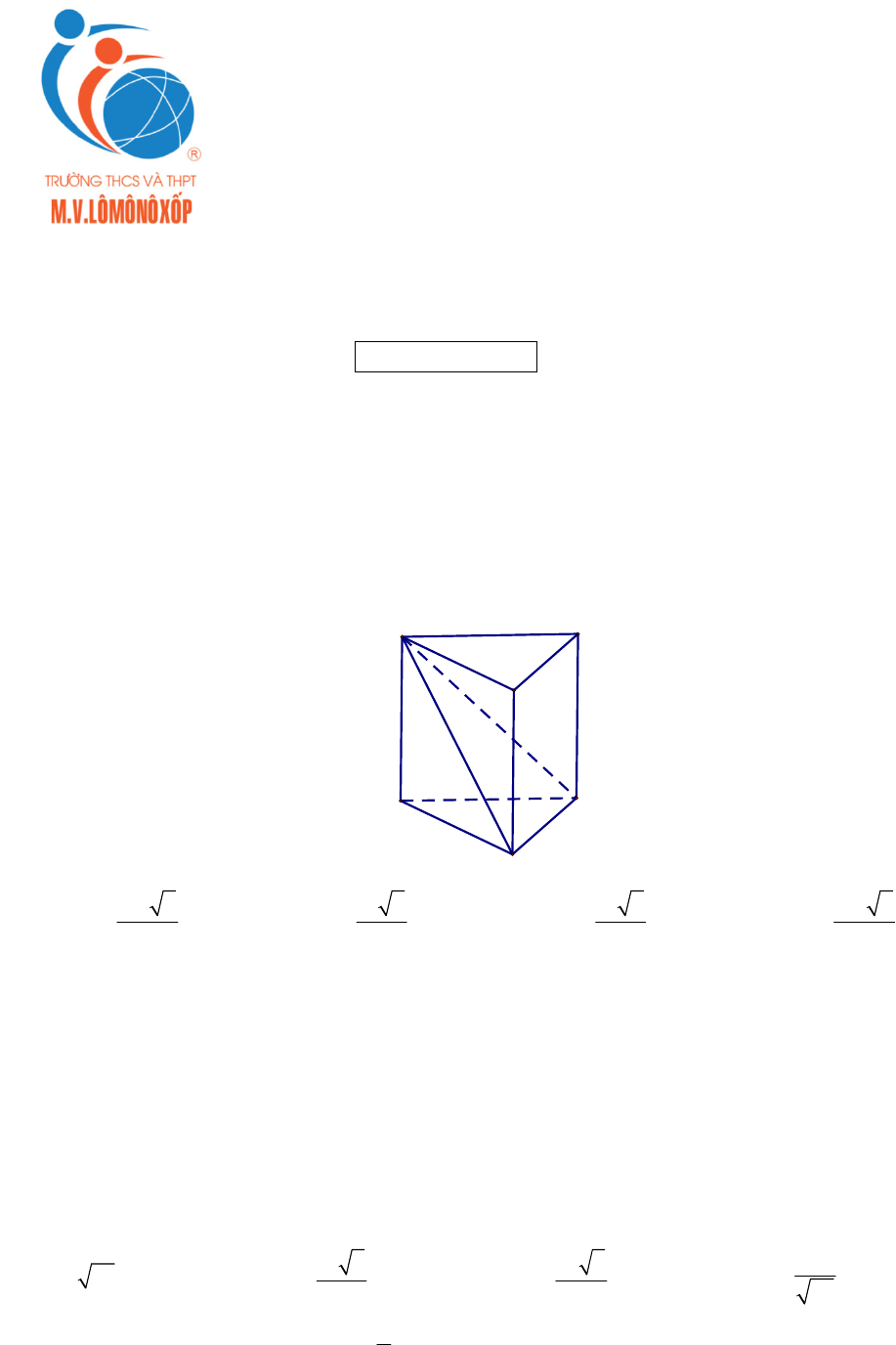 VnDoc xin giới thiệu tới bạn đọc Đề thi thử THPT Quốc gia môn Toán năm 2019 trường M.V Lômônôxốp - Hà Nội lần 2. Nội dung tài liệu gồm 50 câu hỏi trắc nghiệm, thời gian làm bài 90 phút. Mời các bạn học sinh thử sức.